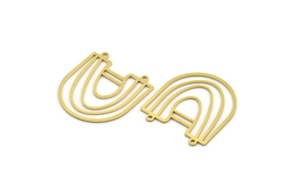 Brass D Shaped Charm, 6 Raw Brass D Shaped Charms With 2 Loops, Necklace Findings (34x30.5x0.80mm) A6214