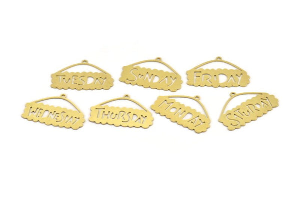 Brass Days Charm, Raw Brass Days Of The Week Written Charms With 1 Loop, Written Pendants, Days Findings (32x22x0.60mm)