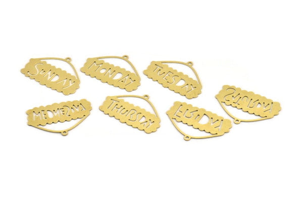 Brass Days Charm, Raw Brass Days Of The Week Written Charms With 1 Loop, Written Pendants, Days Findings (32x22x0.60mm)