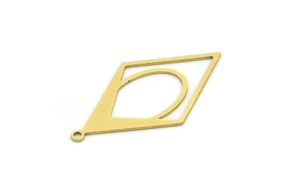 Brass Diamond Charm, 6 Raw Brass Diamond Shaped Charms With 1 Loop, Pendant Findings (33x18x0.60mm) SMP0674