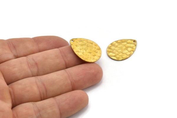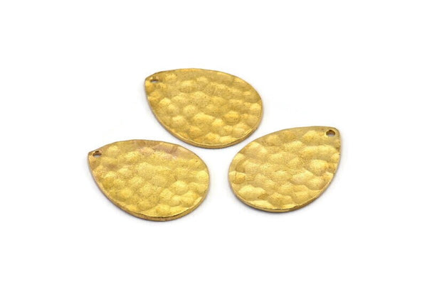 Raw Brass Hammered Drop Pendant With 1 Hole