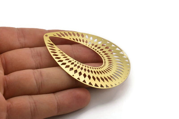 Brass Earring Charm ,4 Raw Brass Ethnic Motif Earring Charms With 1 Hole Pendants, Findings (68x45mm) E473