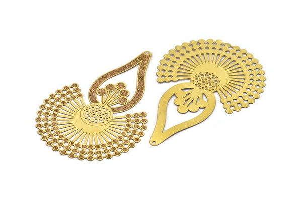 Raw Brass Ethnic Motif Earring Charms With 1 Hole Pendants