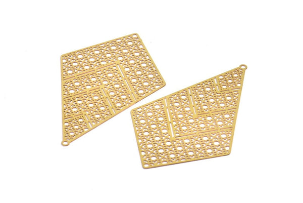 Raw Brass Textured Diamond Earring Charms With 1 Loop Pendants