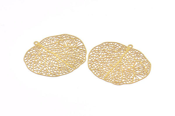 Raw Brass Textured Leaf Earring Charms With 1 Loop Pendants, Findings