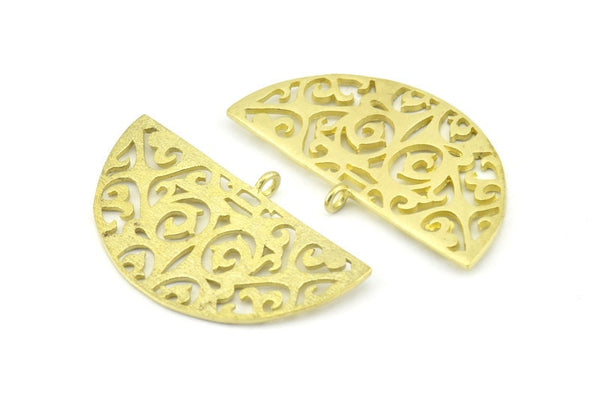 Brass Ethnic Pendant, 2 Raw Brass Semi Circle Pendants with 1 Loop (37x22x1mm) V043