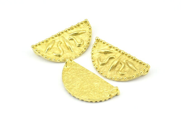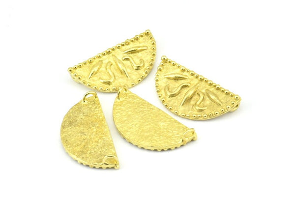 Brass Ethnic Pendant, 2 Raw Brass Semi Circle Pendants with 2 Loops (30x15mm) E665