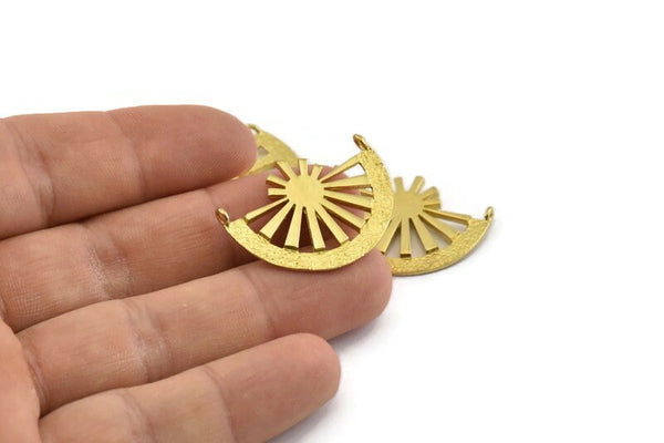 Brass Ethnic Pendant, Raw Brass Semi Circle Pendant With 2 Loops (30x22mm) N0973