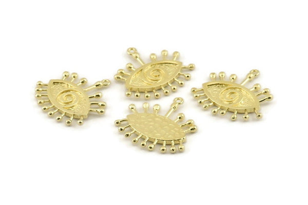 Brass Eye Charm, 2 Raw Brass Eye Charms With 1 Loop, Pendants (26x2mm) N1255