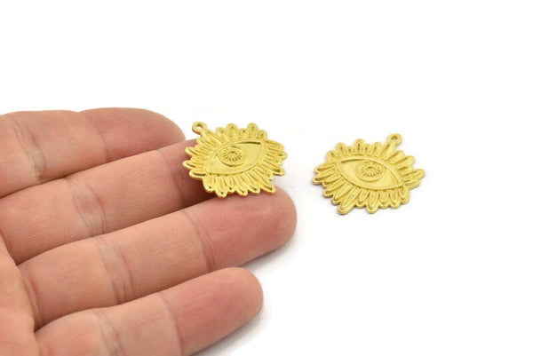 Brass Eye Charm, Hammered Raw Brass Eye Charms With 1 Loop, Eye Pendants (27x23x1.5mm) N2499