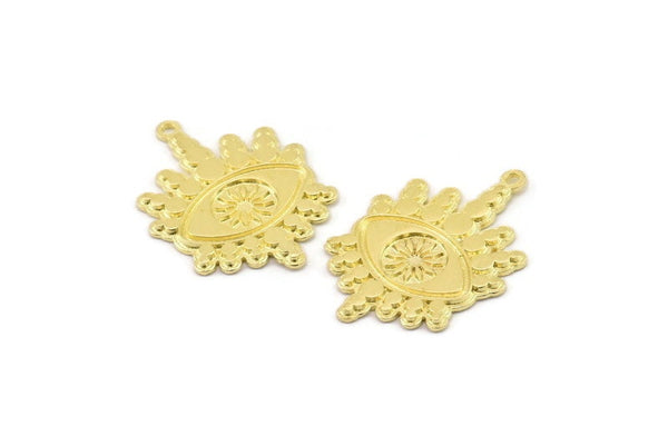 Hammered Raw Brass Eye Charms With 1 Loop
