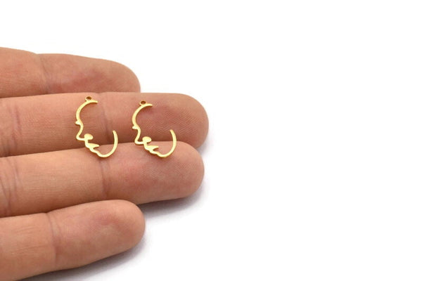 Brass Face Charm, 24 Raw Brass Face Charms With 1 Loop, Pendants, Earrings, Findings (21x11x1mm) D999