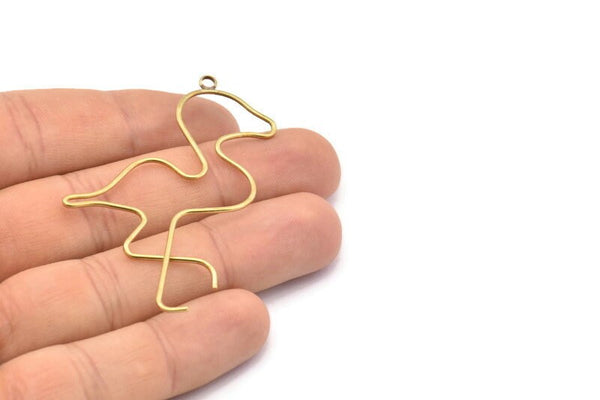Raw Brass Flamingo Wire Pendants With 1 Loop