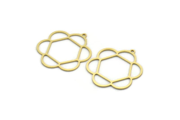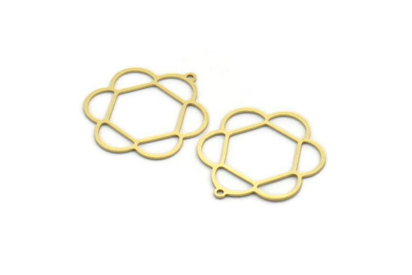 Brass Flower Charm, 12 Raw Brass Flower Charms With 1 Loop, Charm Pendants, Findings (28x24.5x0.60mm) SMP0125