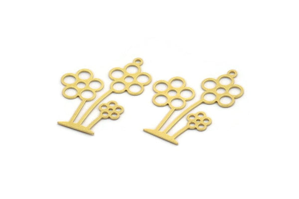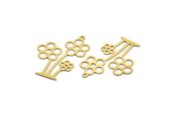 Brass Flower Charm, 12 Raw Brass Flower Shape Charms With 1 Loop, Charm Pendants (34x24x0.60mm) A4751