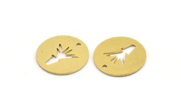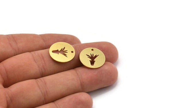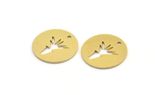 Brass Flower Charm, 12 Raw Brass Round Shaped Flower Charms With 1 Hole, Charm Pendants (17x0.80mm) A4794