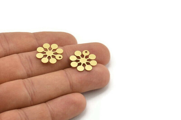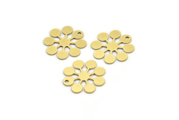 Brass Flower Charm, 12 Raw Brass Round Shaped Flower Charms With 1 Hole, Charm Pendants (18x17x0.60mm) A3499