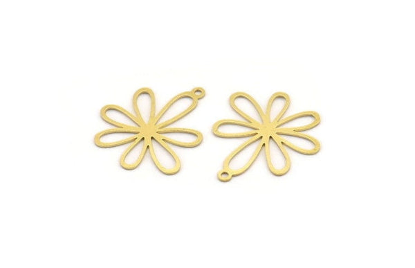 Brass Flower Charm, 24 Raw Brass Flower Charms With 1 Loop, Charm Pendants (26x23x0.60mm) A4637
