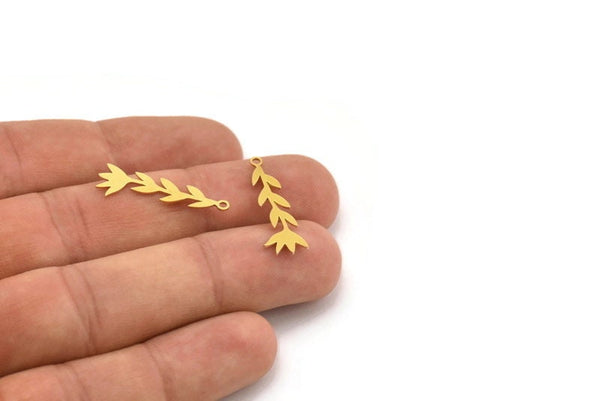 Brass Flower Charm, 24 Raw Brass Flower Charms With 1 Loop, Charm Pendants (27x8.5x0.60mm) A4210
