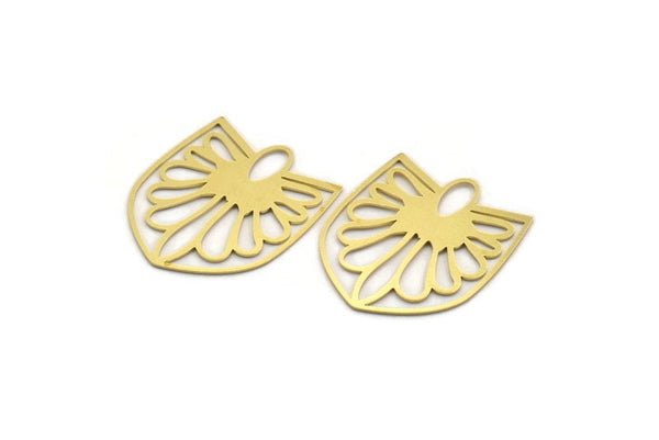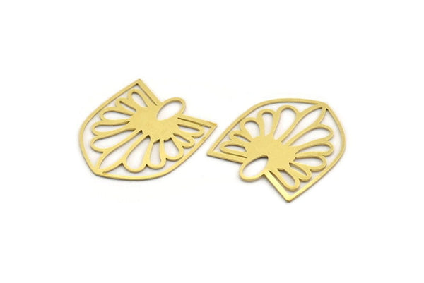 Brass Flower Charm, 4 Raw Brass Flower Charms, Pendants, Findings (33x28x0.60mm) A6478