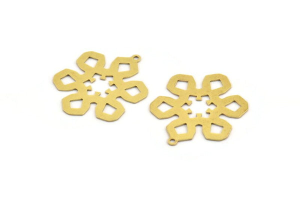 Brass Flower Charm, 6 Raw Brass Flower Charms With 1 Loop, Charm Pendants (31x26x0.60mm) A5432