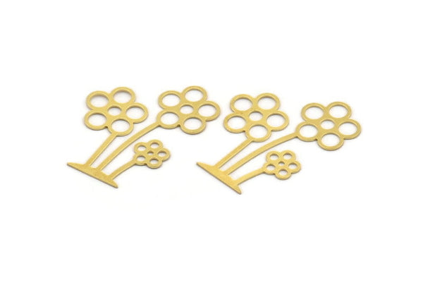 Brass Flower Charm, 8 Raw Brass Flower Shape Charms, Pendants, Findings (41x32x0.60mm) A4753