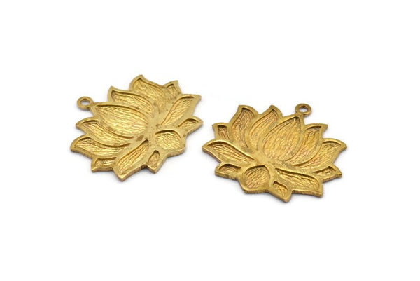 Raw Brass Lotus Flower Textured Pendants With 1 Loop