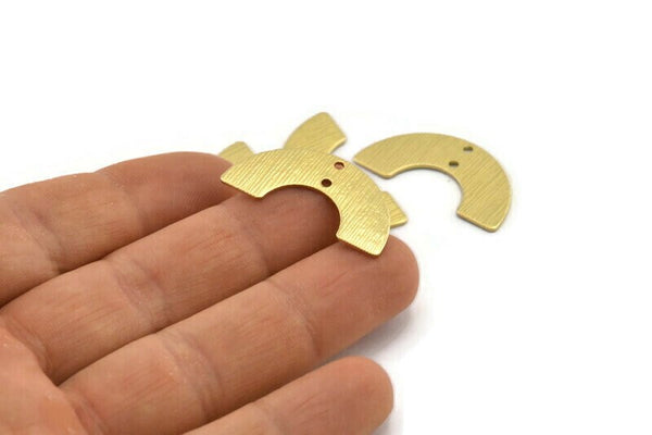 Textured Raw Brass Semi Circle Pendants With 2 Holes
