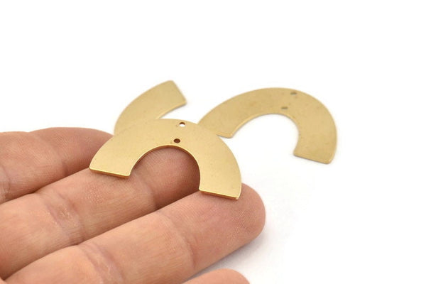 Brass Geometric Charm, 8 Raw Brass Semi Circle Blanks With 2 Holes, Pendants, Findings (34x21x0.80mm) D1553