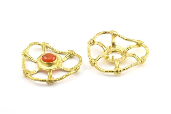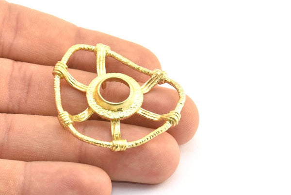 Brass Geometric Pendant, 2 Raw Brass Abstract Necklace Findings With 3 Claws and 11mm Pad Setting (41x36x8x2mm) BS 1923