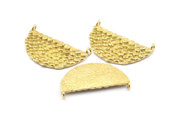 Raw Brass Textured Semi Circle Pendants With 2 Loops