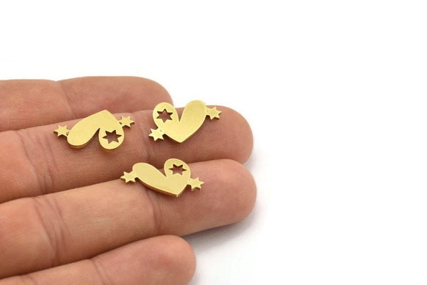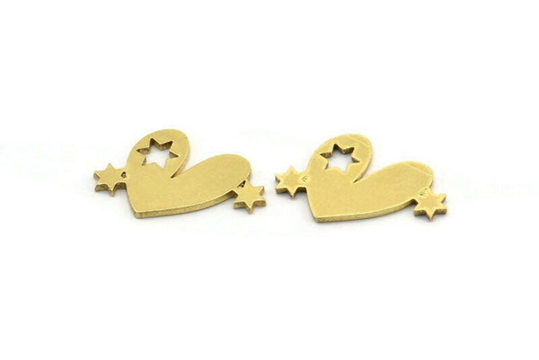Raw Brass Heart Charms, Pendants, Earring Findings