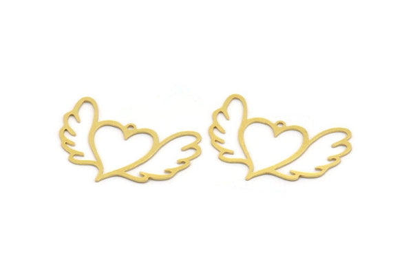 Brass Heart Charm, 12 Raw Brass Heart Shaped Charms With 1 Loop, Findings, Pendants (24x36x0.60mm) A5191