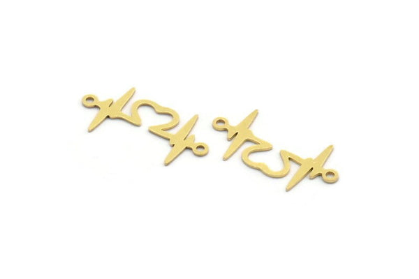 Brass Heart Charm, 24 Raw Brass Heart Rhythm Shaped Charms With 2 Loops, Necklace Findings (13x25.5x0.60mm) A6546