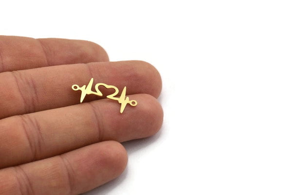 Raw Brass Heart Rhythm Shaped Charms With 2 Loops