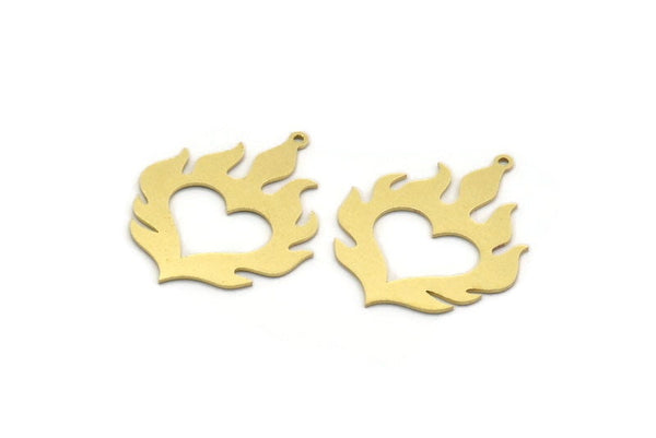 Raw Brass Burning Heart Shaped Charms With 1 Loop