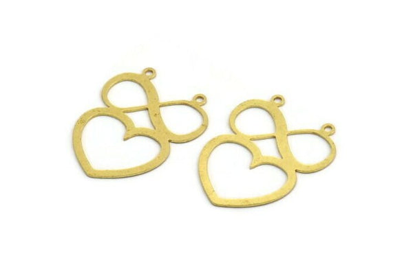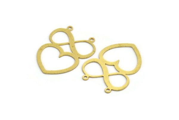 Brass Heart Charm, 8 Raw Brass Heart Shaped Charms With 2 Loops, Findings, Pendants (31x24x0.60mm) A5379