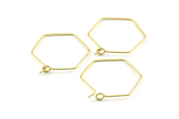 Brass Hexagon Earring, 24 Raw Brass Wire Hexagon Earring Charms, Pendants, Findings (20x0.7mm) E320