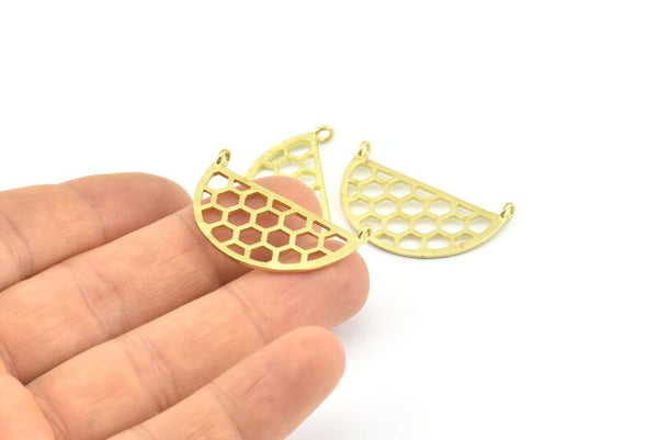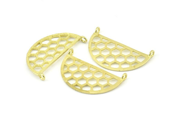 Raw Brass Semi Circle Honeycomb Pendants With 2 Loops