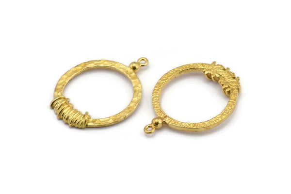 Hammered Raw Brass Hoop Pendant With 1 Loop