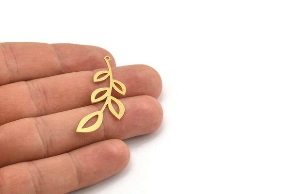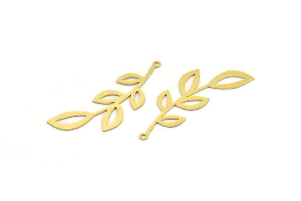 Brass Leaf Charm, 10 Raw Brass Branch Charms With 1 Loop, Charm Pendants (46x17x0.60mm) A4209