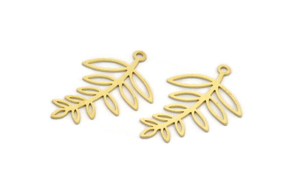 Brass Leaf Charm, 12 Raw Brass Branch Charms With 1 Loop, Charm Pendants (33x23x0.60mm) A5071