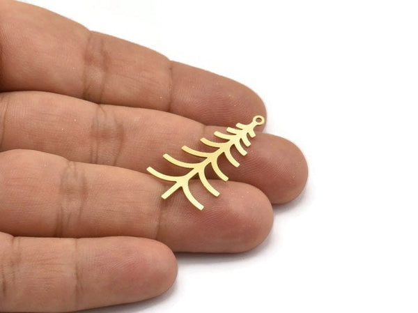 Brass Leaf Charm, 12 Raw Brass Branch Charms With 1 Loop, Charm Pendants (34x17x0.60mm) A6303