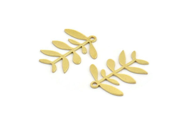 Brass Leaf Charm, 24 Raw Brass Branch Charms With 1 Loop, Charm Pendants (20x16x0.60mm) A4438