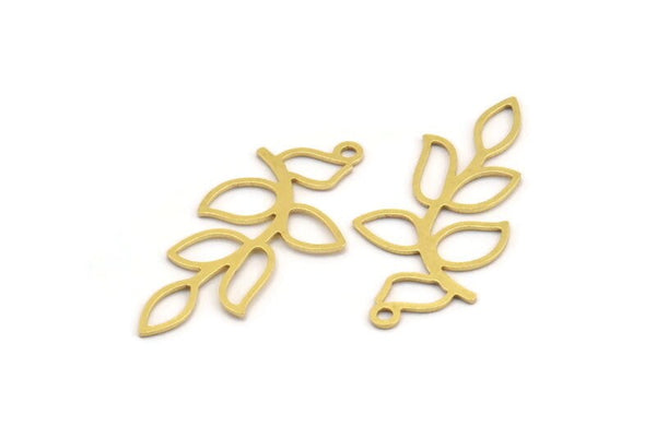 Brass Leaf Charm, 24 Raw Brass Branch Charms With 1 Loop, Charm Pendants (33x16x0.60mm) A5220