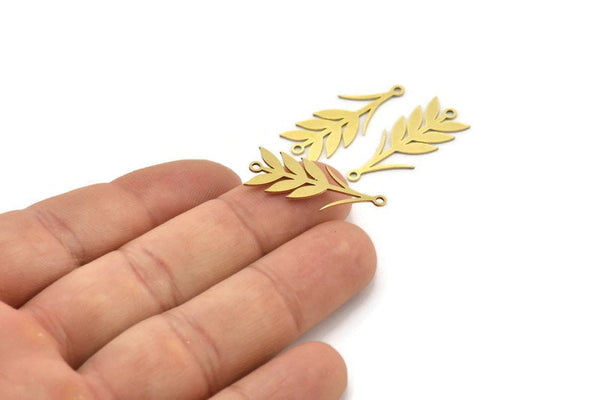 Brass Leaf Charm, 24 Raw Brass Ear Of Wheat Charms With 2 Loops, Charm Pendants (27x11x0.60mm) A3315