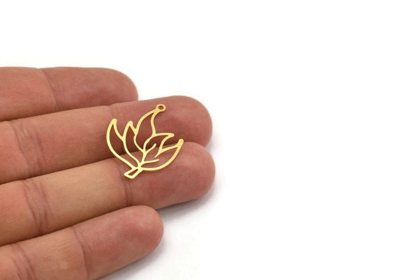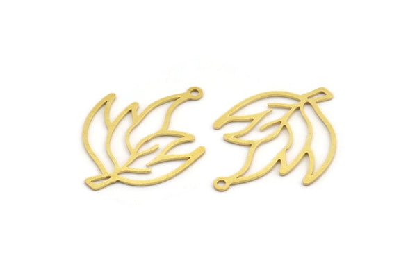 Brass Leaf Charm, 24 Raw Brass Leaf Charms With 1 Loop, Charm Pendants (29x22x0.60mm) A5194