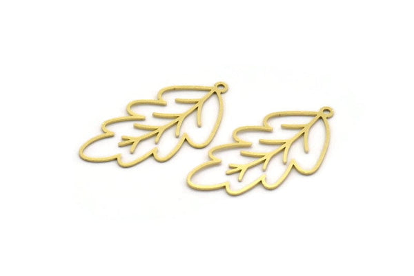 Brass Leaf Charm, 24 Raw Brass Leaf Charms With 1 Loop, Charm Pendants (35x17x0.60mm) A6348