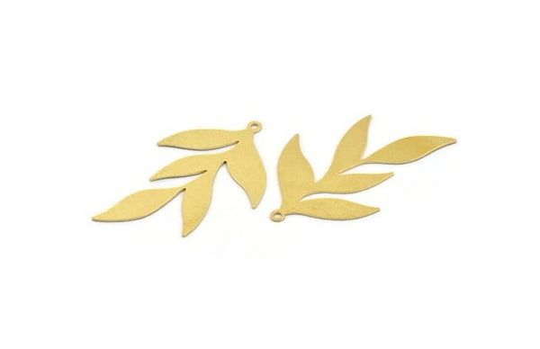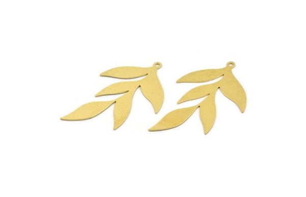 Brass Leaf Charm, 4 Raw Brass Branch Charms With 1 Loop, Charm Pendants (46x30x0.60mm) A4923