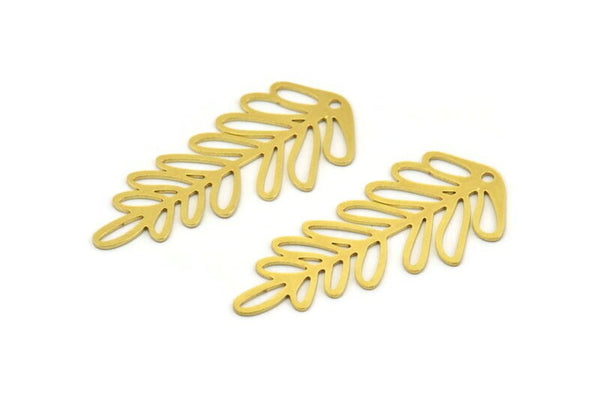 Brass Leaf Charm, 6 Raw Brass Branch Charms With 1 Loop, Charm Pendants (43x20x0.60mm) A4557
